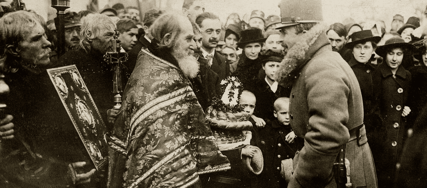 Emperor King Karl in Bokowinia, Homage of the PopulationA RESOLUTE PEACEMAKERFrom the very beginning of his reign, Karl worked to create peace for his empire. He had been against the declaration of war, and now he was in a position to put an end to the needless killing and fighting. In his accession speech he proclaimed: "I will do all within my power to banish the horrors and sacrifices of war at the earliest possible date and to win back for my peoples the sorely missed blessings of peace . . ."
